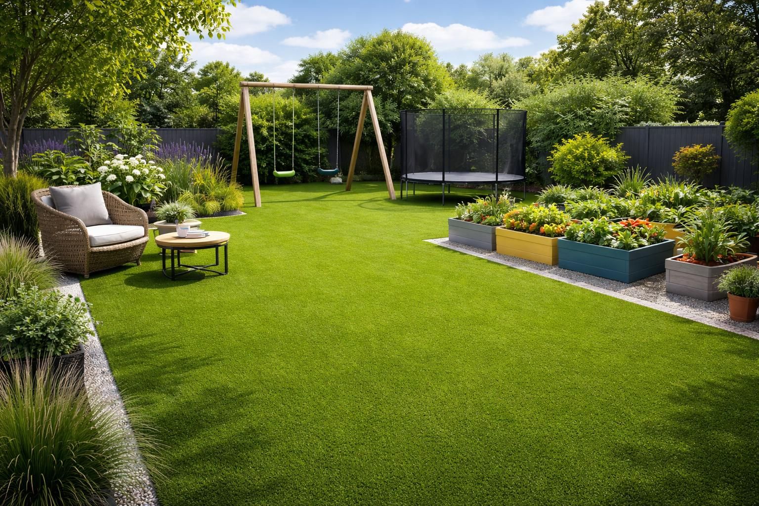 Dans un cadre de jardin, l’herbe synthétique permet de créer des zones de détente, de jeux pour enfants ou même des espaces de jardinage sans nécessiter d’entretien excessif. Elle offre une esthétique toujours plaisante sans contraintes.