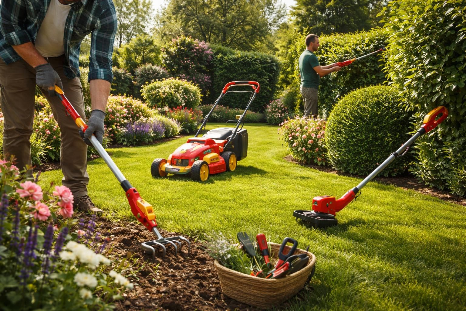 - Tondeuse électrique : Parfaite pour les jardins de taille intermédiaire, elle offre un fonctionnement sans bruit et sans émissions.